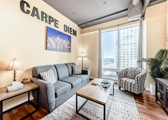 2 Full Beds, Rogers Place Downtown Central, Memorable 1 Bedroom Condo Edmonton is located 2 km from Strathcona and 25 minutes' walk from 82 Avenue Northwest. The apartment is a short distance from 100 Street Funicular and comes complete with a washing machine at guests' disposal.